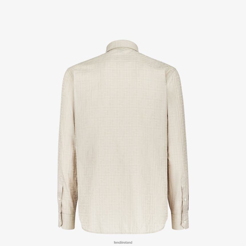 Regular-fit shirt with Italian-style collar. Concealed fastening with buttons. Made of beige cotton and viscose muslin, with all-over jacquard FF motif. Embellished with two gusseted patch pockets with flap and button on the chest.