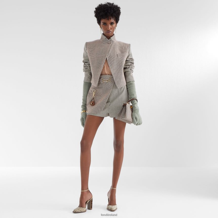 Fendi Women Houndstooth Wool Jacket R06TFR1220 Apparel Beige