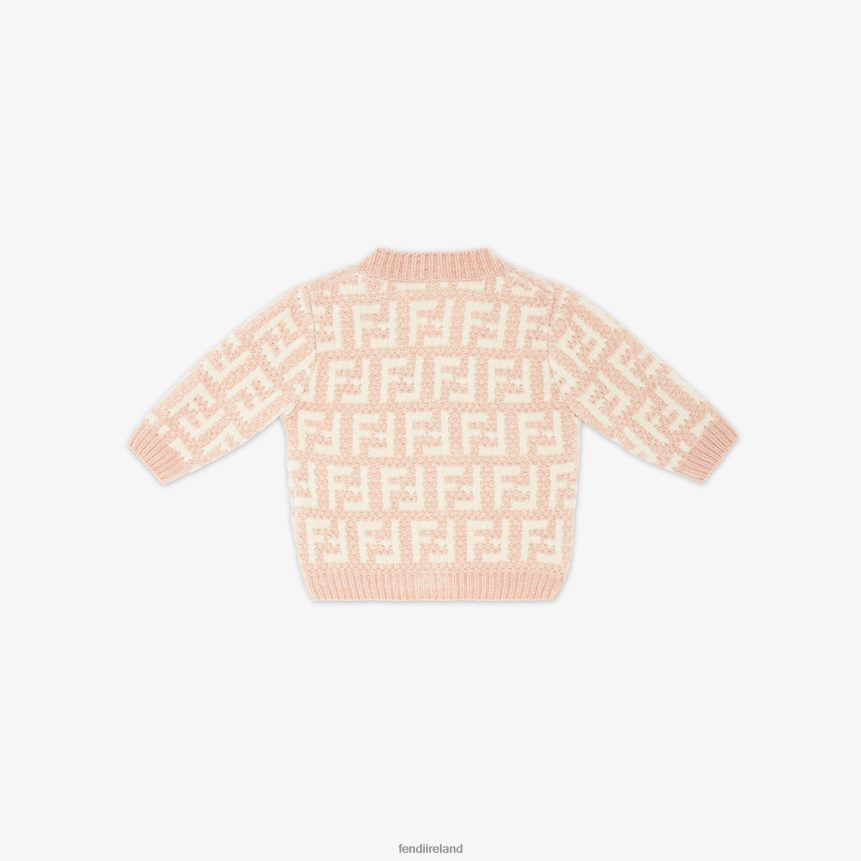 Fendi Kids Cream Chenille Cardigan R06TFR2815 Apparel Pink