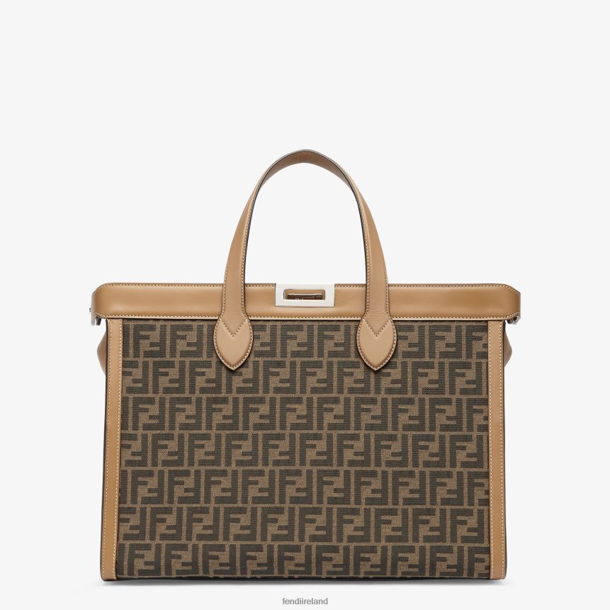 Peekaboo ISeeU Forty8 bag made of FF motif jacquard fabric, embellished with beige leather details.