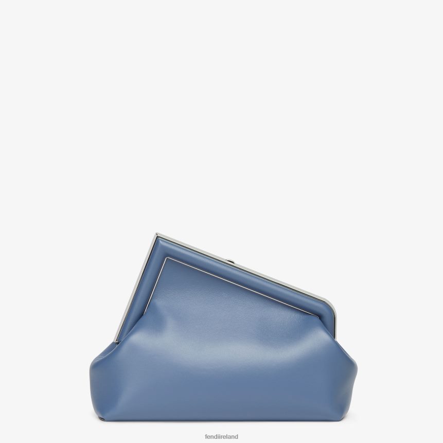Fendi First bag in the perfect size for daytime, made of soft, blue nappa leather, with oversized metal F clasp bound in tone on tone nappa leather.