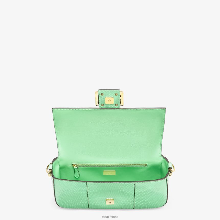 Medium iconic Baguette bag made of exquisite green python leather embellished with an FF clasp.