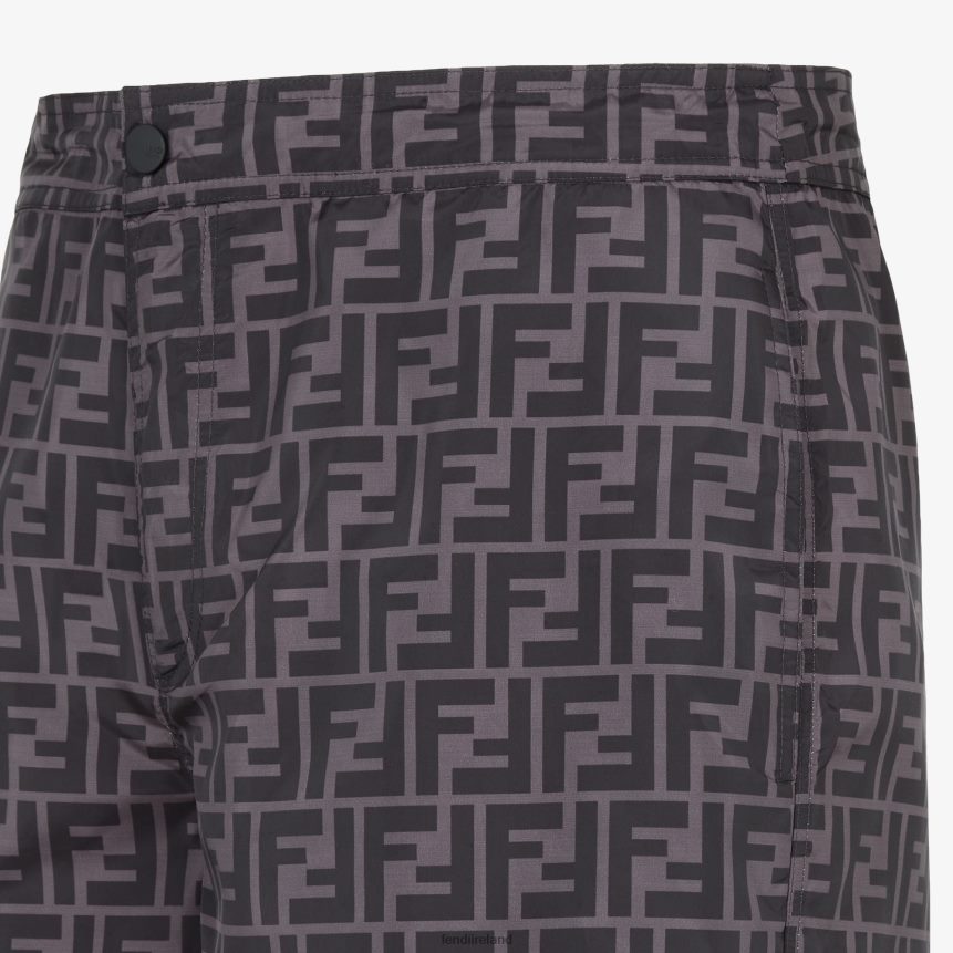 Surf shorts with side pockets. Zip and button fastening. Made of nylon with an all-over printed FF motif in black and gray.