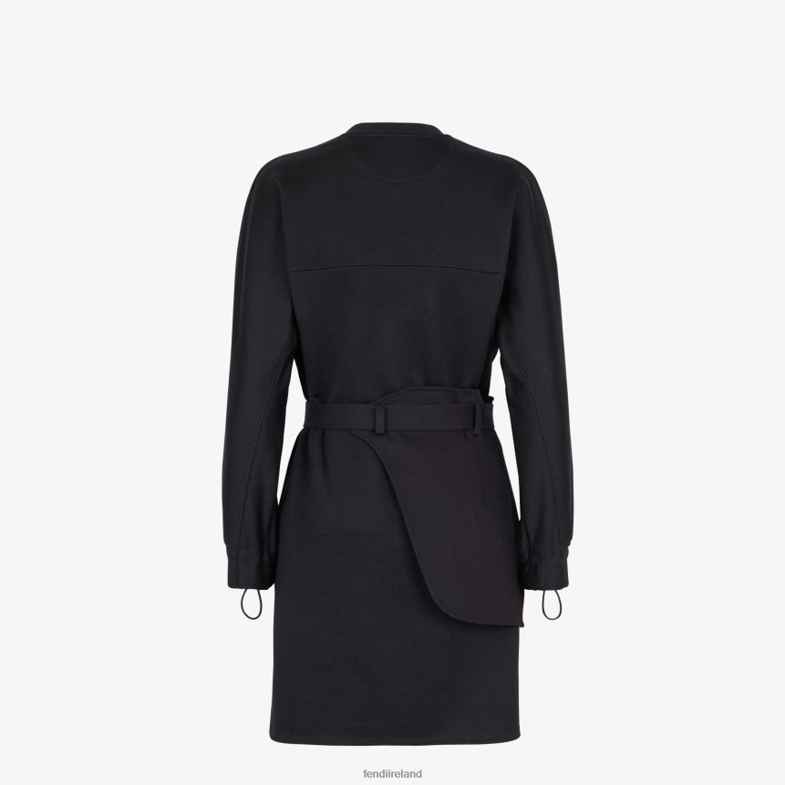 Short, sweatshirt-style dress with round neckline and long sleeves. The garment features a removable belt with a side peplum and welt pocket. Metal Fendi O'Lock buckle with gold finish. Made of soft, black jersey.