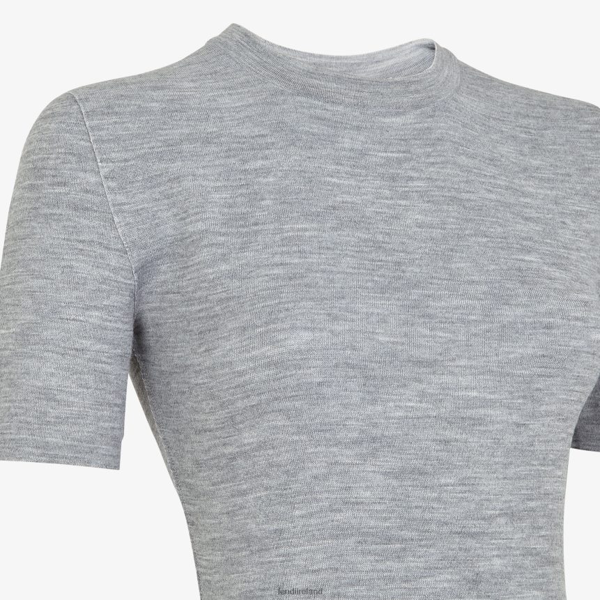 Reversible sheath dress with crew neck and short sleeves. Made fine, double-sided wool knit, with one side in gray melange and the other customized with a matching-tone FF motif.