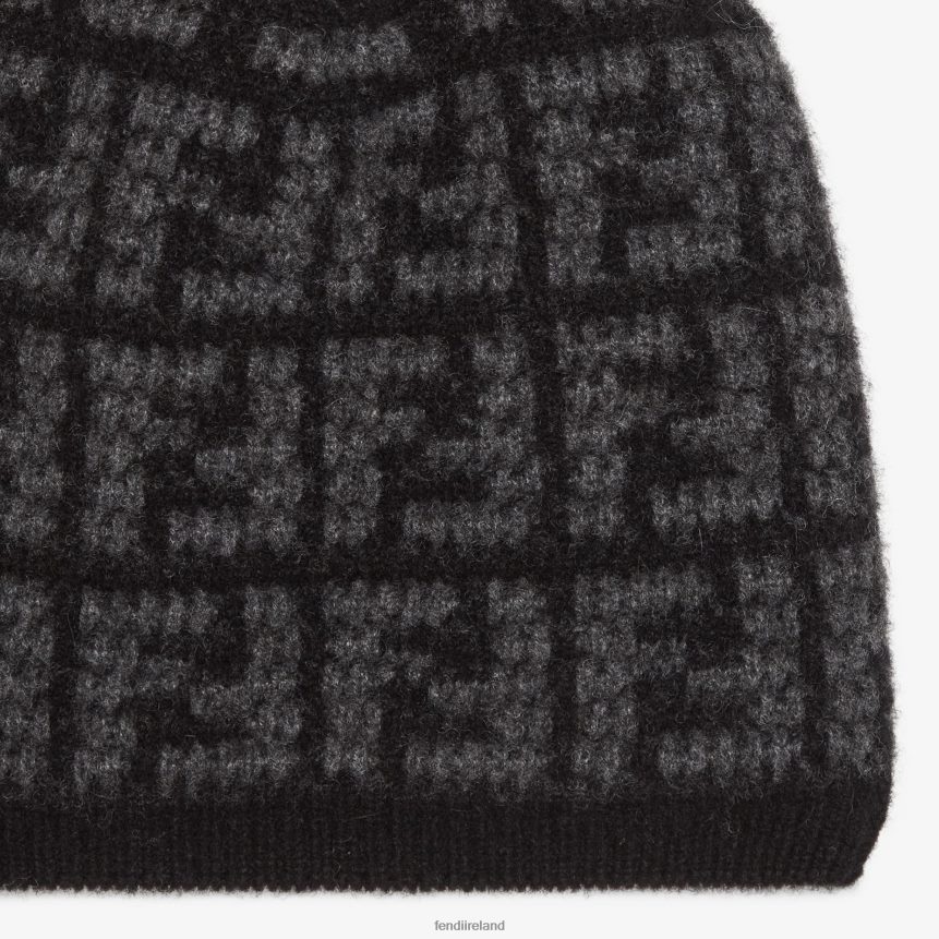 Skullcap made of cashmere with all-over inlaid FF motif in gray and black.