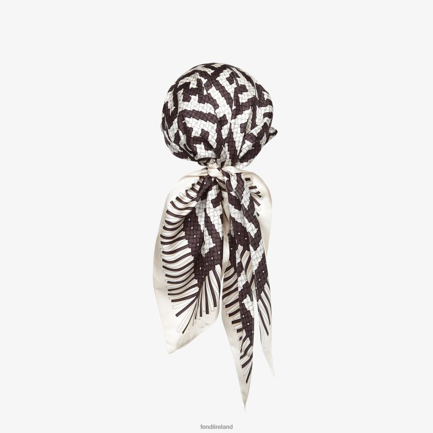 Foulard hat with visor. Made of silk, with trompe-l'oeil effect FF Interlock motif printed all over in black and beige. Matching-tone soft nappa visor. Hand-finished hem.