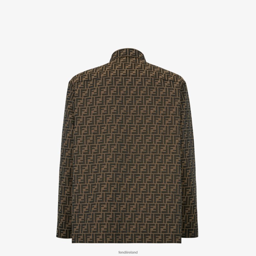 Jacket with shirt collar and patch pockets on the chest. Concealed button fastening. Made of brown fabric with all-over jacquard FF motif.