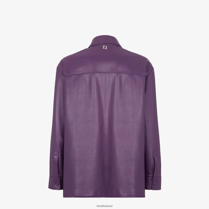 Shirt-style jacket with a pointed collar and two patch breast pockets. Long sleeves with shirt cuffs. Button closure. Made of purple soft plonge. Embellished with a palladium-finish metal FF detail at the back of the collar.