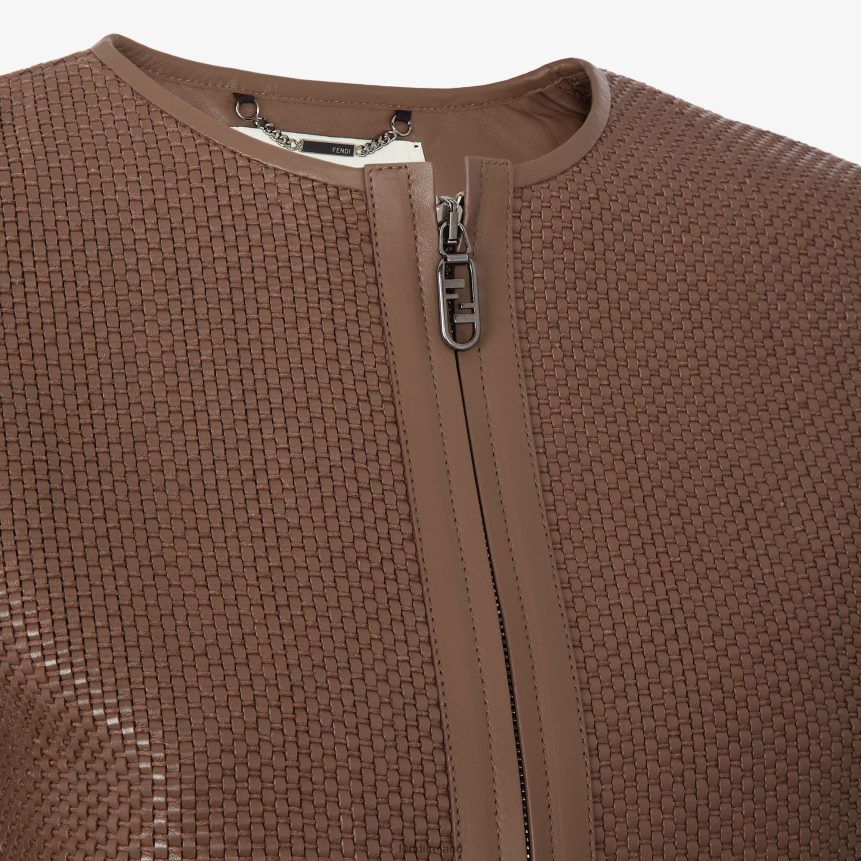 Fendi Women Woven Leather Jacket R06TFR1140 Apparel Brown