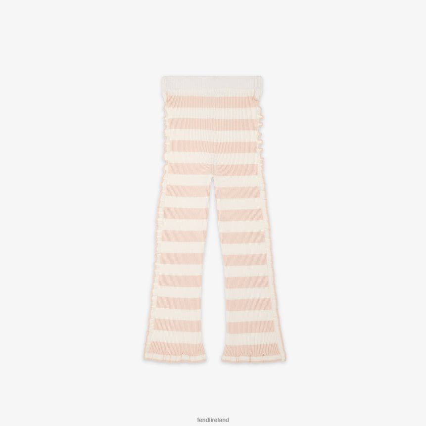 Junior pants in a wool-blend knit with cream and pink stripes. With ruffles and pink FF logo on the waist.