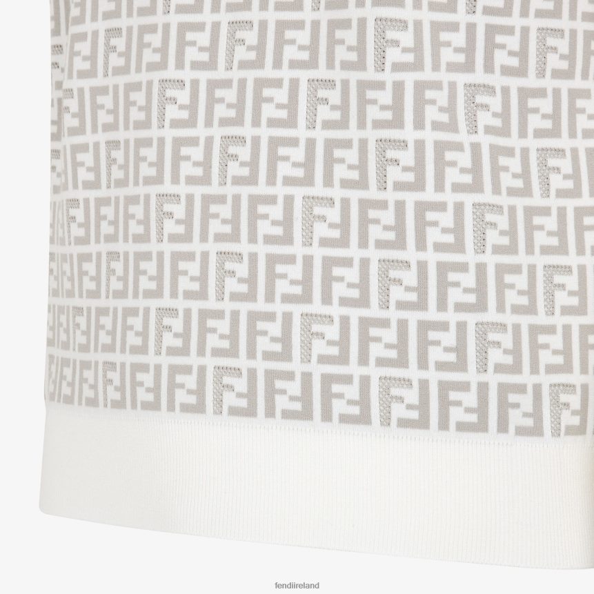 Short-sleeved, crew-neck jumper. Ribbed edges. Made of white viscose yarn with an FF motif inlay.