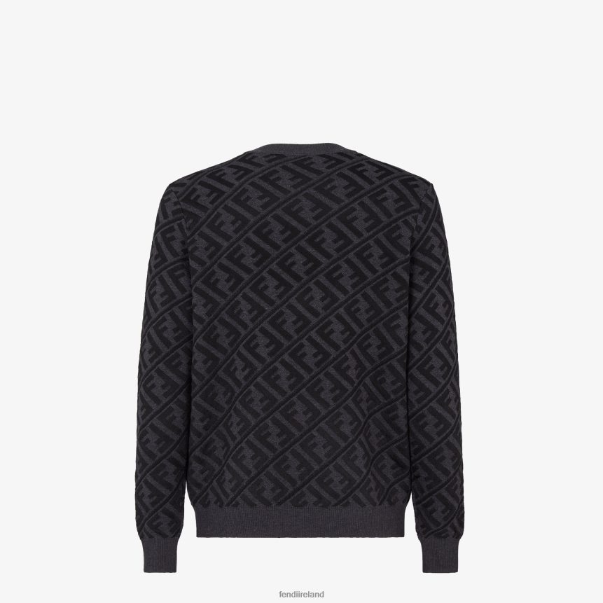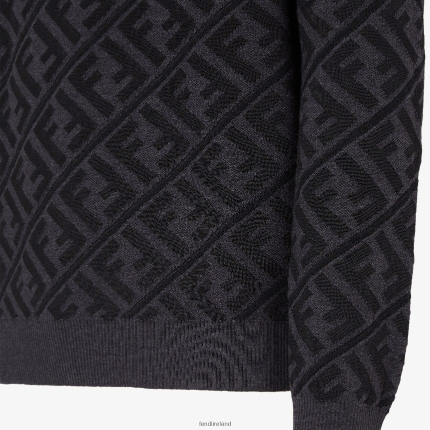 Long-sleeved, regular-fit crew-neck jumper. Ribbed edges. Made of wool and viscose with a black and gray all-over diagonal jacquard FF motif.