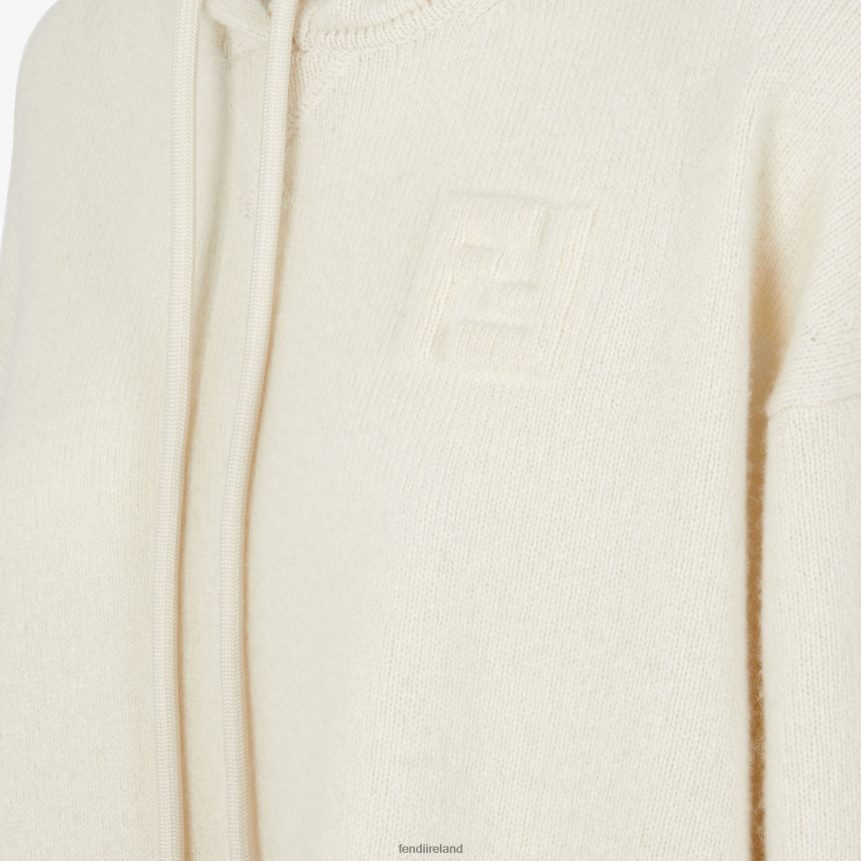 Oversized sweater with drawstring hood and low set-in sleeves. Made of white eco cashmere. Branded with embossed FF detail on the chest.