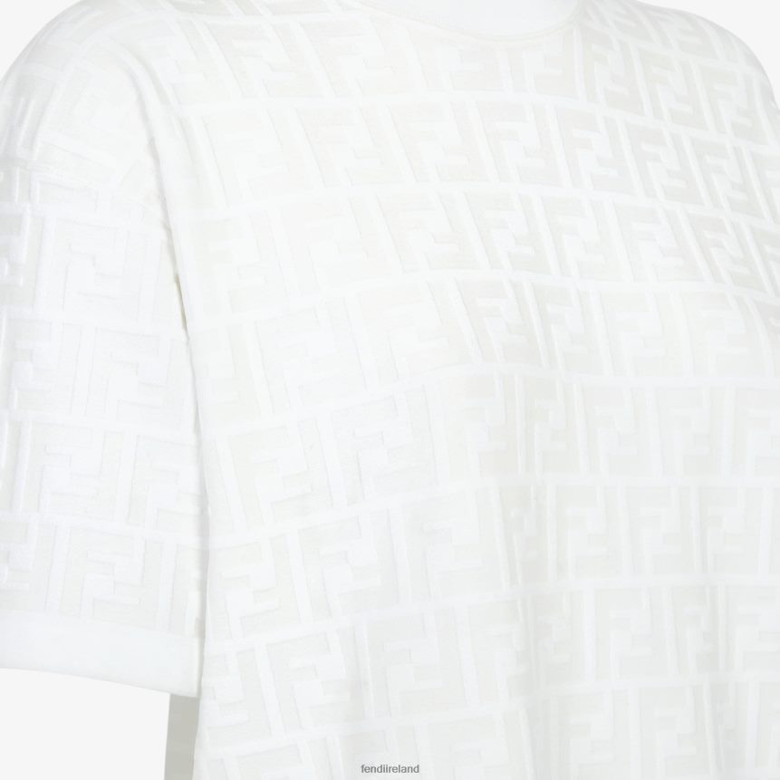 Short-sleeved crew-neck sweater. Made of a white viscose knit with all-over raised FF motif.