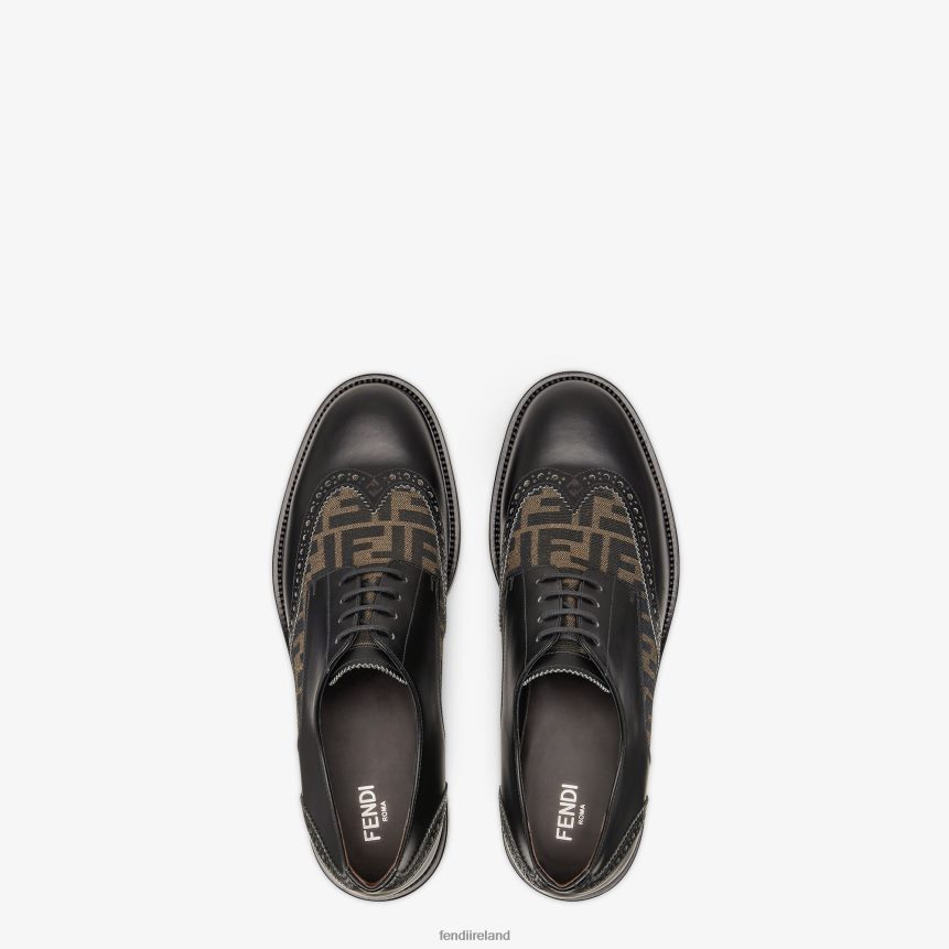 Derby lace-ups with brogue stitching. Made of black leather. Finished with FF fabric inserts in black and tobacco. Leather sole with injection-moulding in non-slip rubber with FF motif.