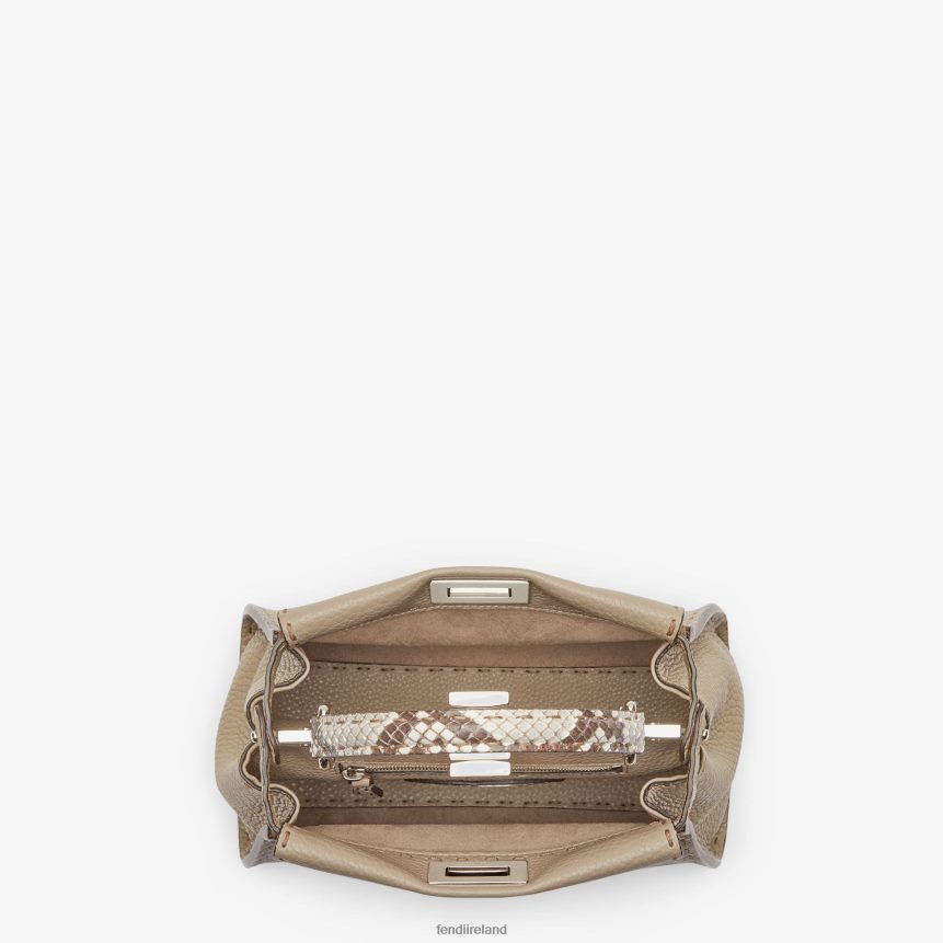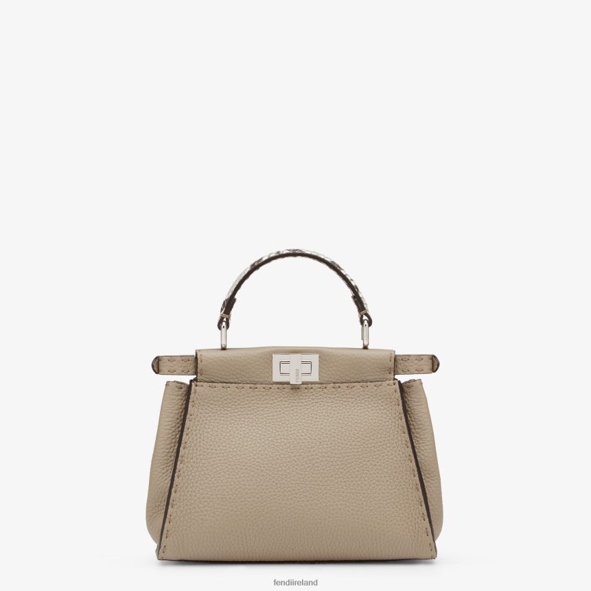 Iconic small Peekaboo bag made of dove gray Cuoio Romano leather, finished with hand stitching and embellished with the classic twist lock on both sides.