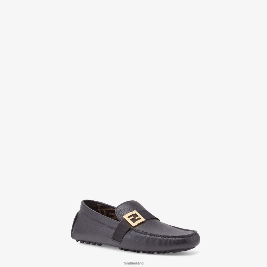 Driving loafers. Flexible pebble sole. Made of black Roman leather. Tonal ribbon with FF detail in satin-finish metal. Jacquard FF fabric lining.