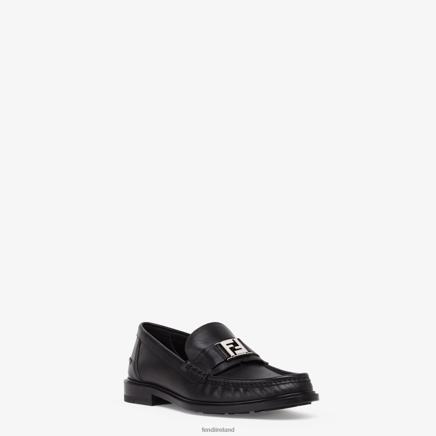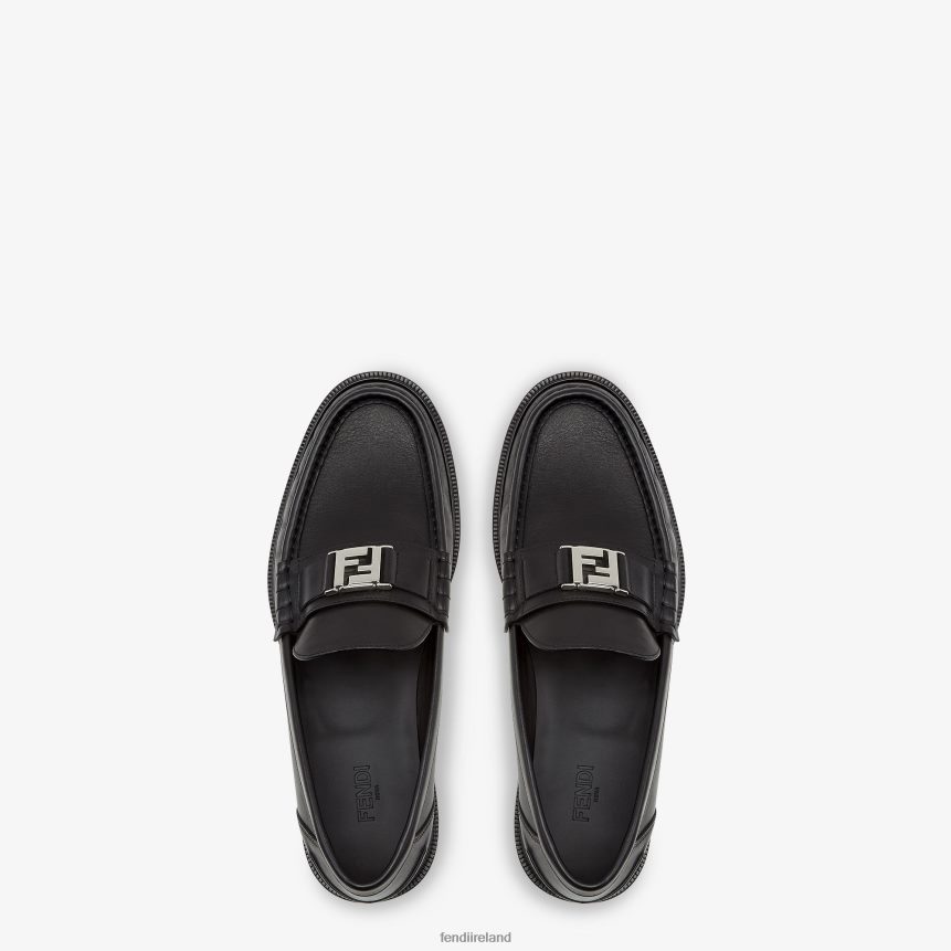 FF motif loafer. Made of black leather. Leather soles. Palladium-finish metalware.