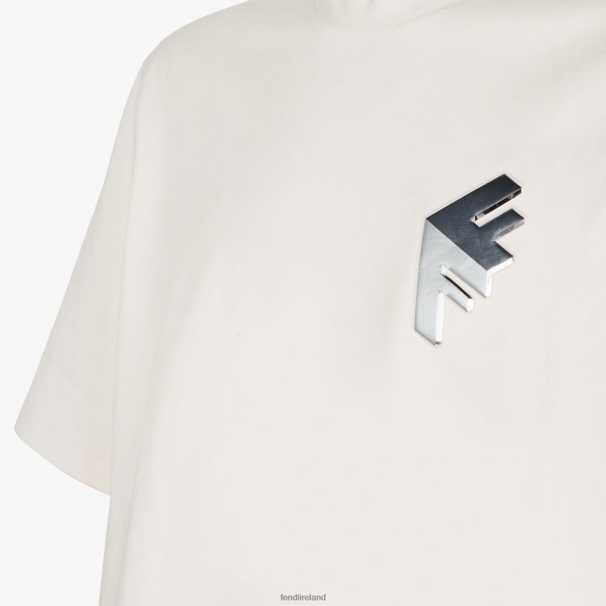Short-sleeved, crew-neck skater-style T-shirt. Made of white cotton jersey. Customized with 3D-effect Fendi Block detail printed in two different colors.