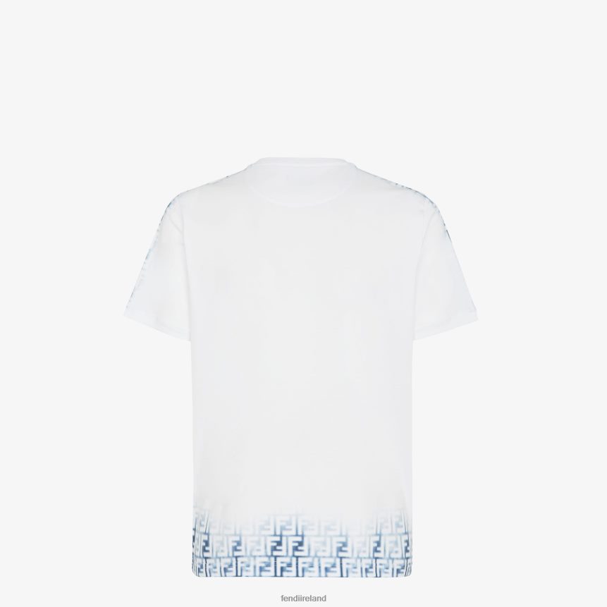 Regular-fit T-shirt with crew neck and short sleeves. Made of white cotton jersey. Embellished with blue gradient FF motif on the shoulders and hem.