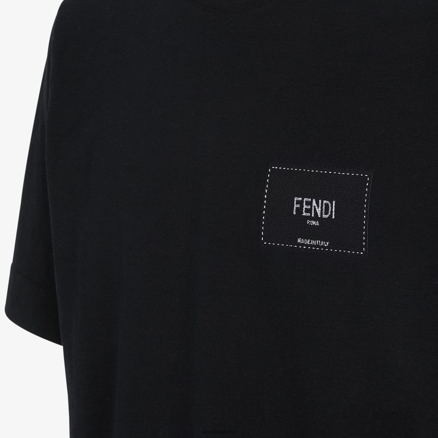 Short-sleeved crew-neck oversized T-shirt. Made from black cotton jersey. Embellished with the Fendi embroidered jacquard label on the chest.