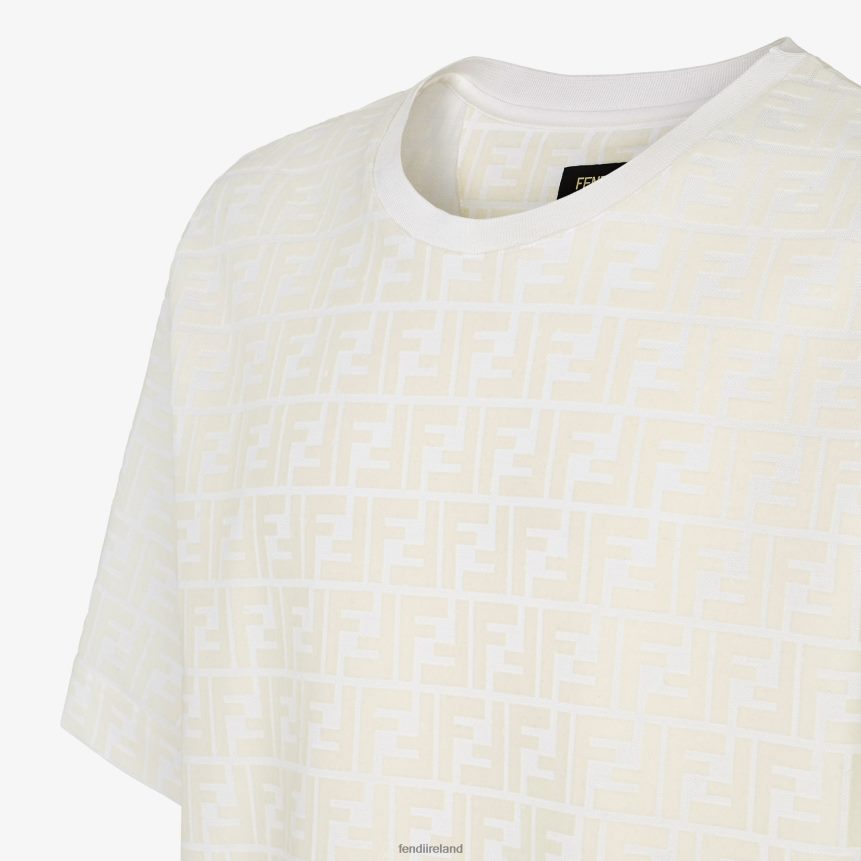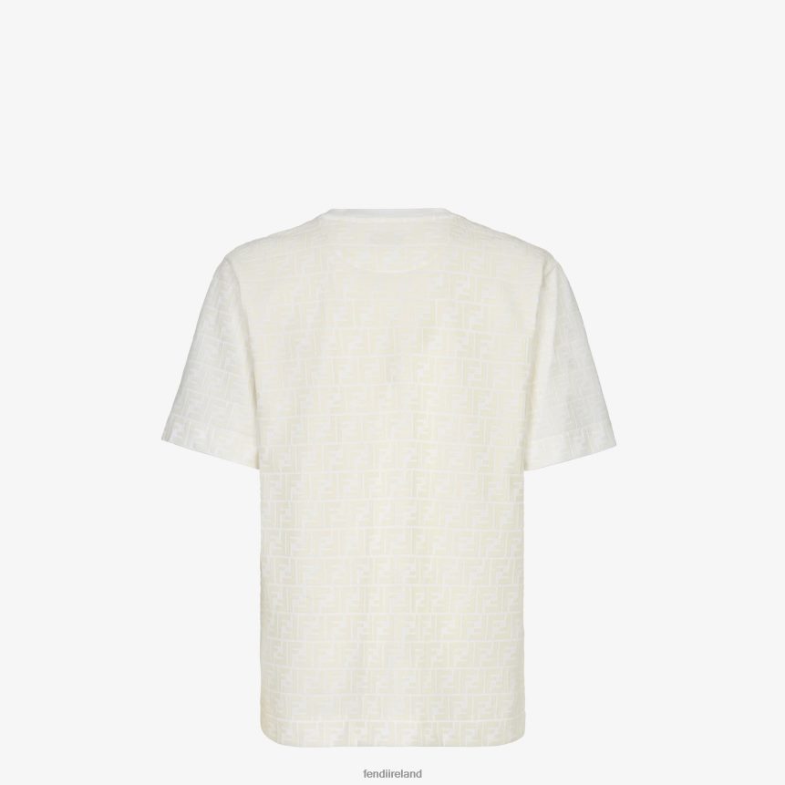 Short-sleeved, crew-neck oversize T-shirt. Made with white cotton pique. Decorated with tone on tone flocked FF motif printed all over.