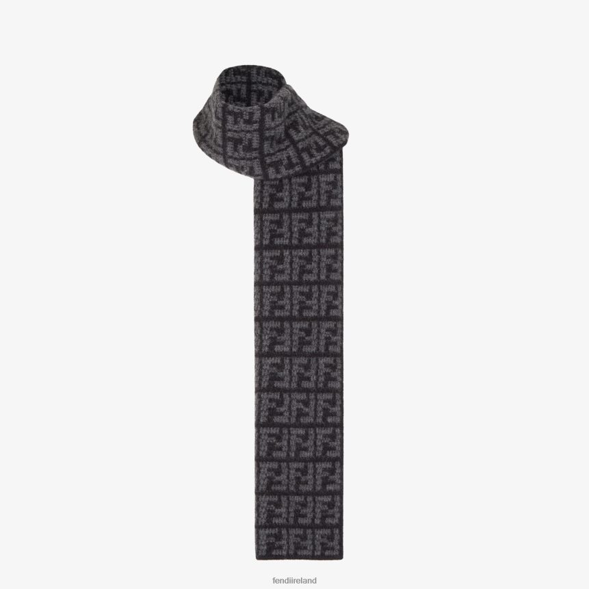 Rectangular cashmere scarf with one side branded with an all-over black and anthracite gray jacquard FF motif.