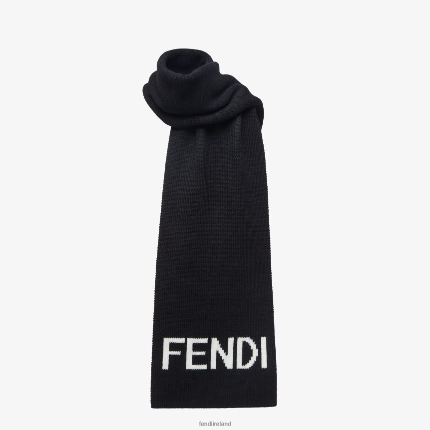 Rectangular scarf made of black wool. Decorated with jacquard Fendi lettering in white.