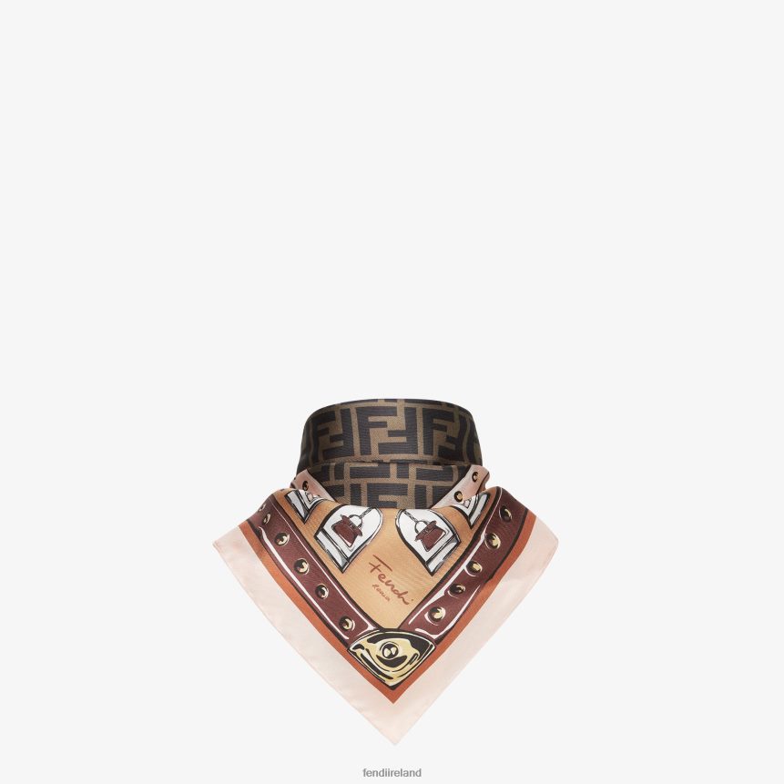 Fendi Women Silk Foulard R06TFR4 Accessories Brown