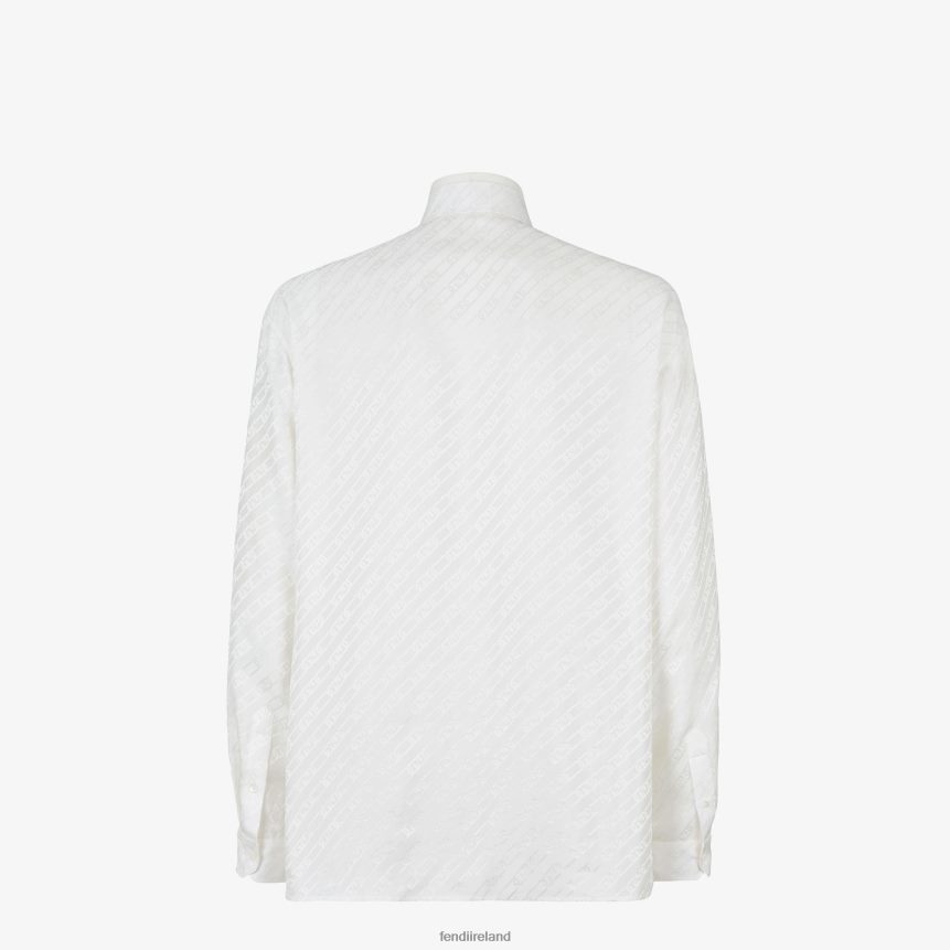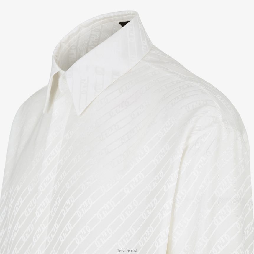 Regular-fit shirt with Italian-style collar. Concealed fastening with buttons. Made of white cotton with an all-over diagonal jacquard Fendi O'Lock motif.