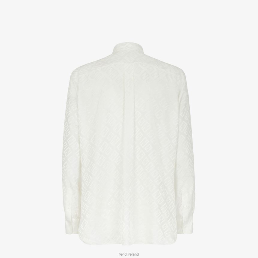 Regular-fit shirt with Italian-style collar. Concealed closure with buttons. Made of pearl white silk with all-over FF Baguette motif.