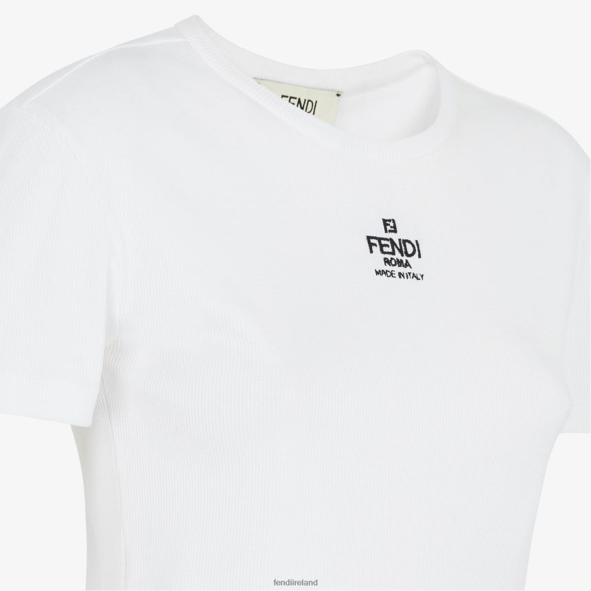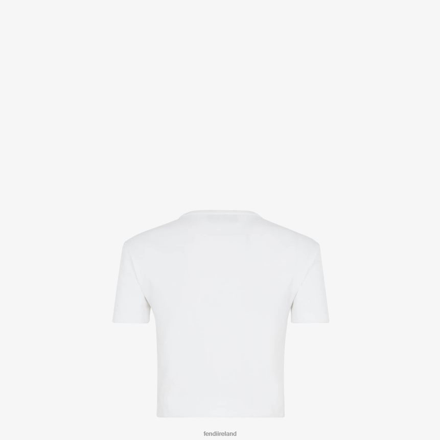Cropped slim-fitting top with crew neck and short sleeves. Made of white cotton rib-knit jersey. Customized with a small contrasting "FENDI ROMA MADE IN ITALY" logo print on the front.