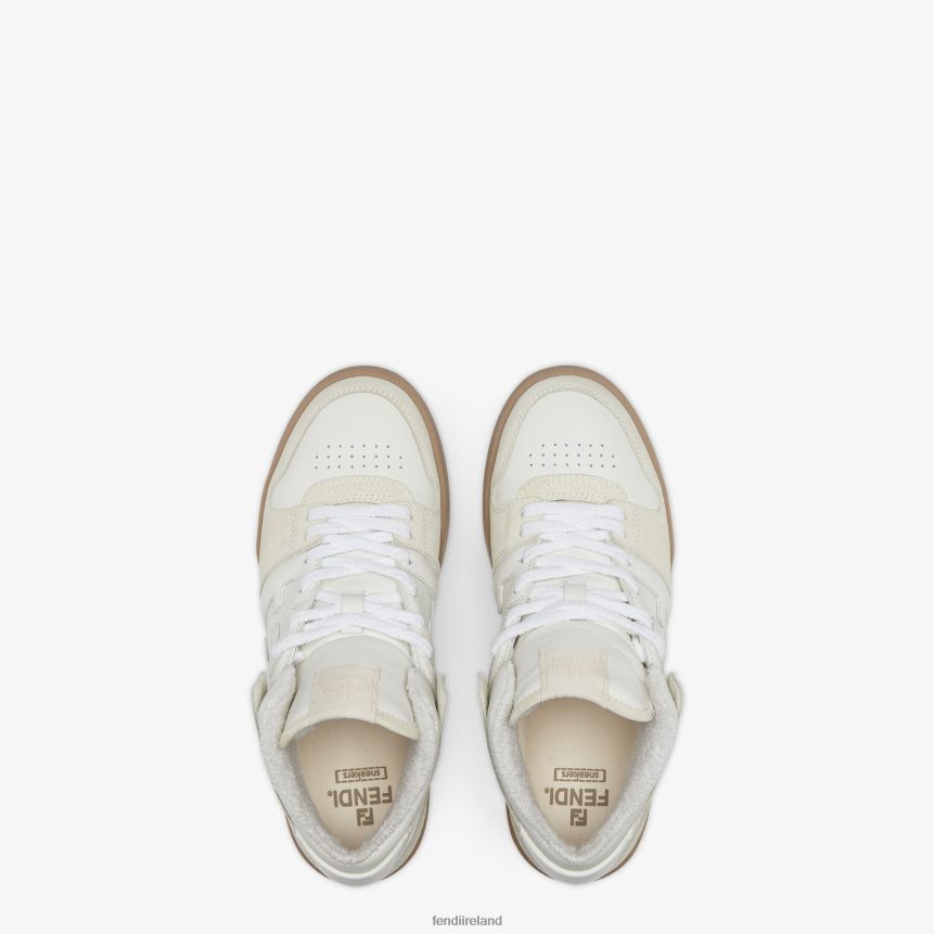 Fendi Match lace-up sneakers. Made of white leather with pale gray suede details. Rubber sole with Fendi lettering on the side.
