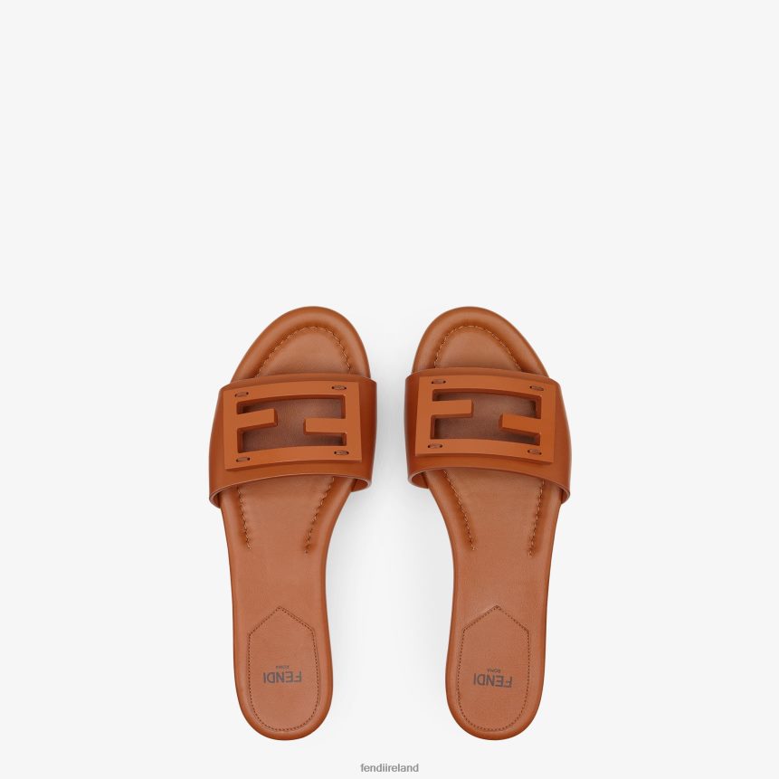 Wide-band slides. Made from brown leather. Embellished with FF Baguette motif in tone on tone leather.
