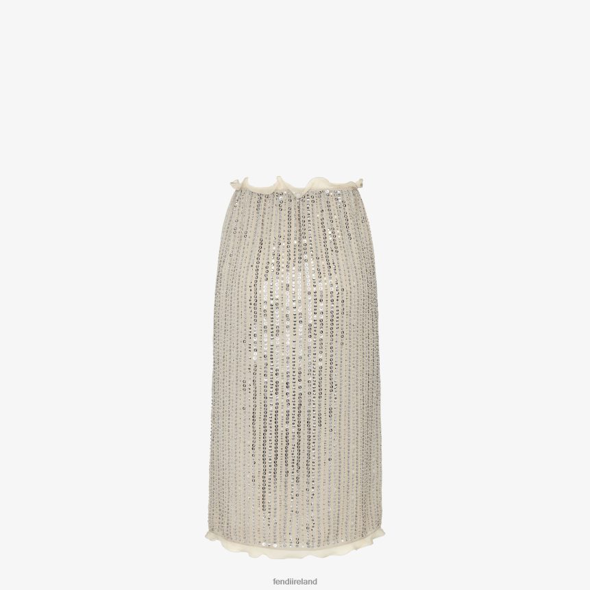 Fendi Women Skirt With Sequin Embroidery R06TFR1254 Apparel Silver