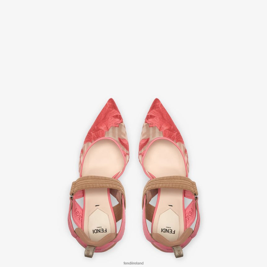 Fendi Women Mesh High-Heeled Slingbacks R06TFR1323 Shoes Pink
