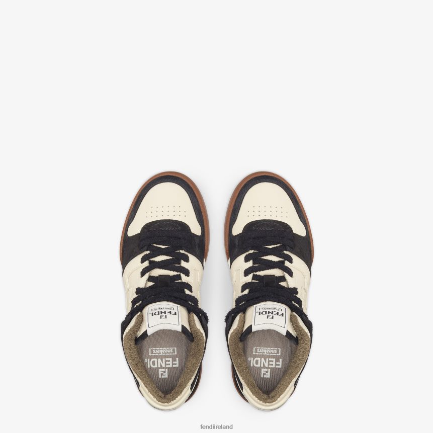 Fendi Match lace-up sneakers. Made of white leather with black suede details. Rubber sole with Fendi lettering on the side.