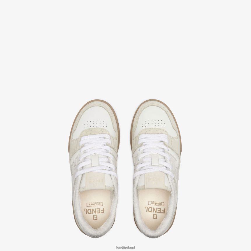 Fendi Match compact design sneakers with vintage label on tongue. Branded with FF pattern sewn on the side and embossed Fendi lettering on the sole. Made of white suede and leather. Embellished with tone on tone terry collar and laces. Covered rubber cupsole with beige bumper.