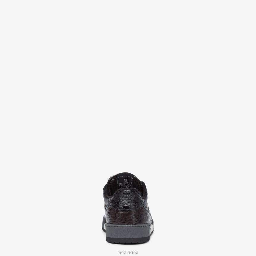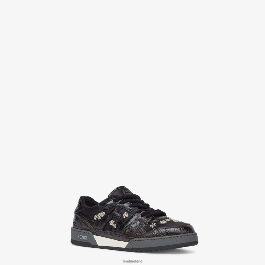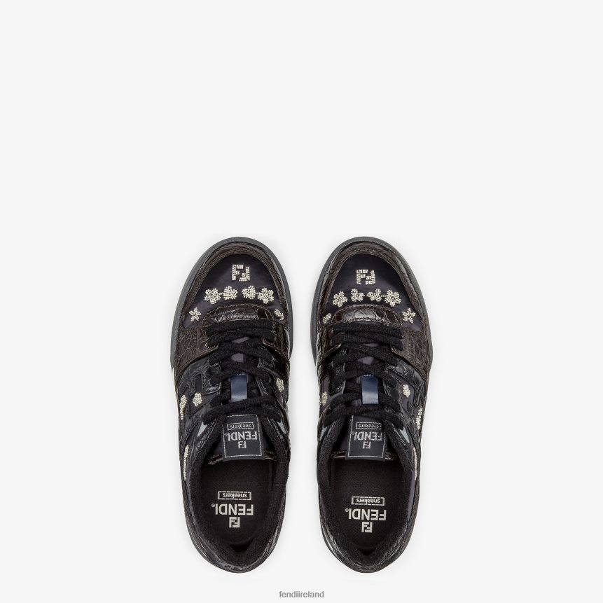 Fendi Match lace-up sneakers. Made of dark brown caiman with black nylon details. Embellished with bead embroidery. Rubber sole with Fendi lettering on the side.