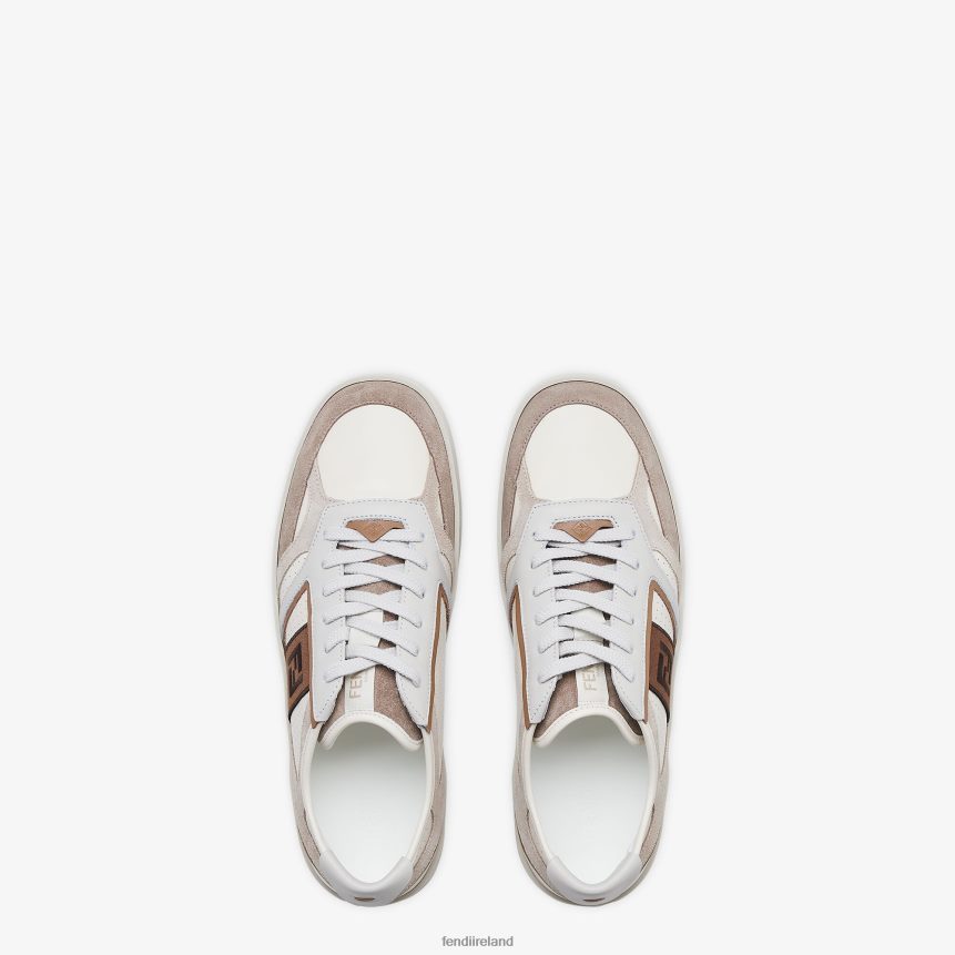 Lace-up sneakers. Made of beige leather. Brown suede details. Embellished with micro perforations at the sides and ribbon with FF embroidery. Rubber sole with Fendi Roma lettering at the back.