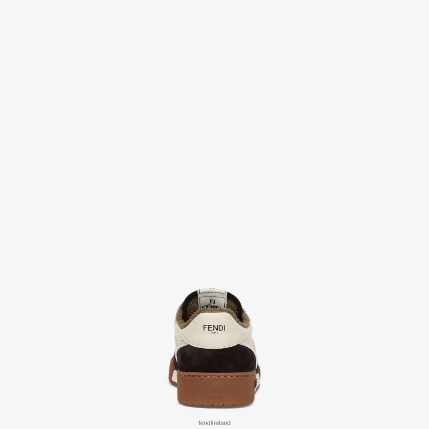 Fendi Match compact design sneakers with vintage label on tongue. Branded with FF pattern sewn on the side and embossed Fendi lettering on the sole. Made of black suede with white leather details. Embellished with black terry collar and laces. Covered rubber cupsole with brown bumper. The style includes a second pair of white terry laces.