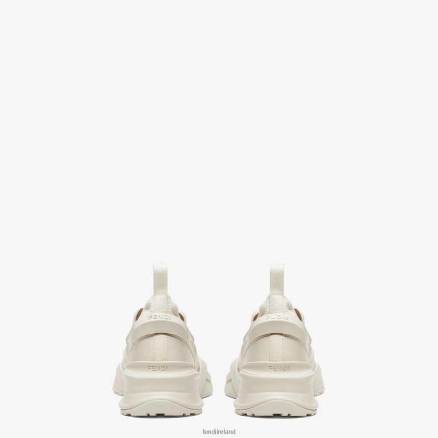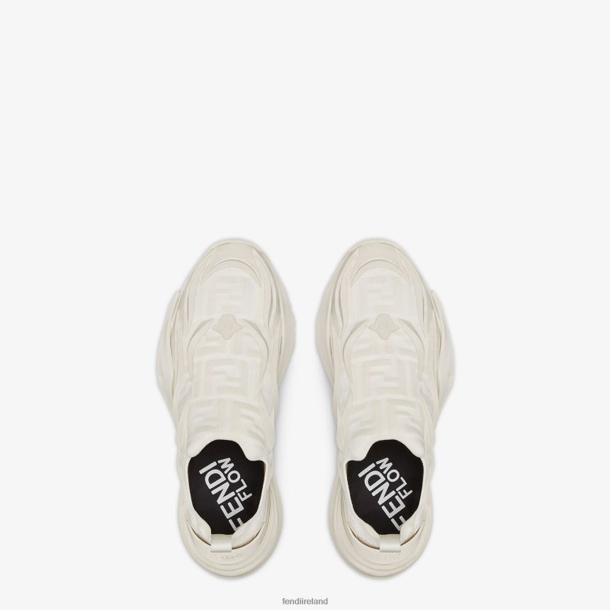 Slip-on sneaker with corrugated sole with engraved F. Fendi Flow lettering embossed on the heels. Made of a FF motif jacquard mesh in white and ivory. White rubber details embellished with innovative artisanal techniques.