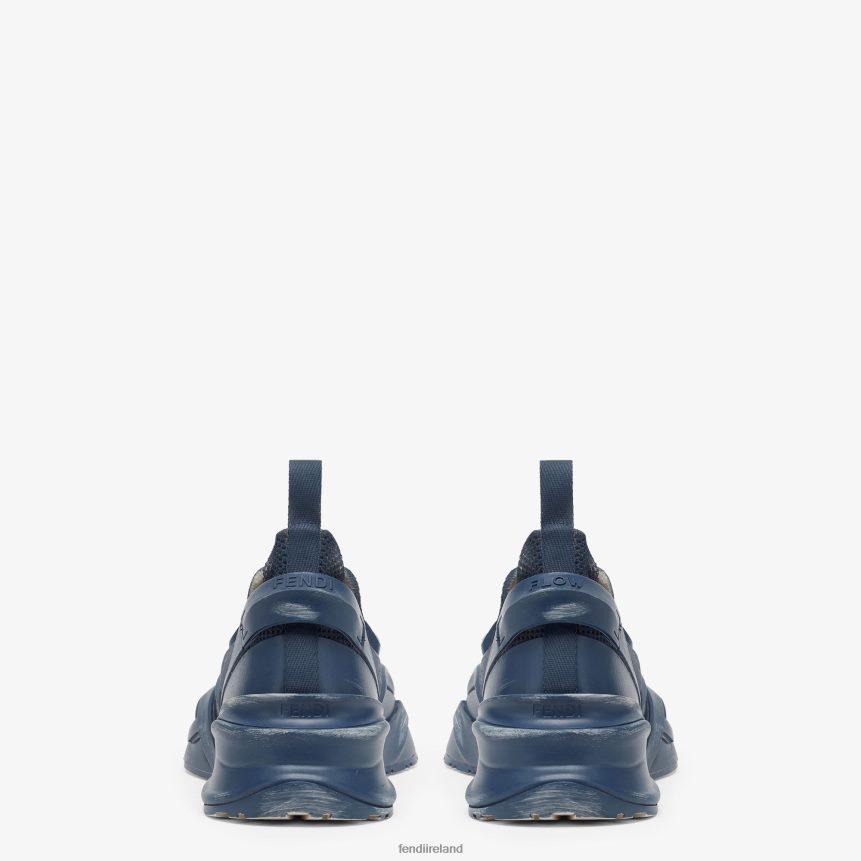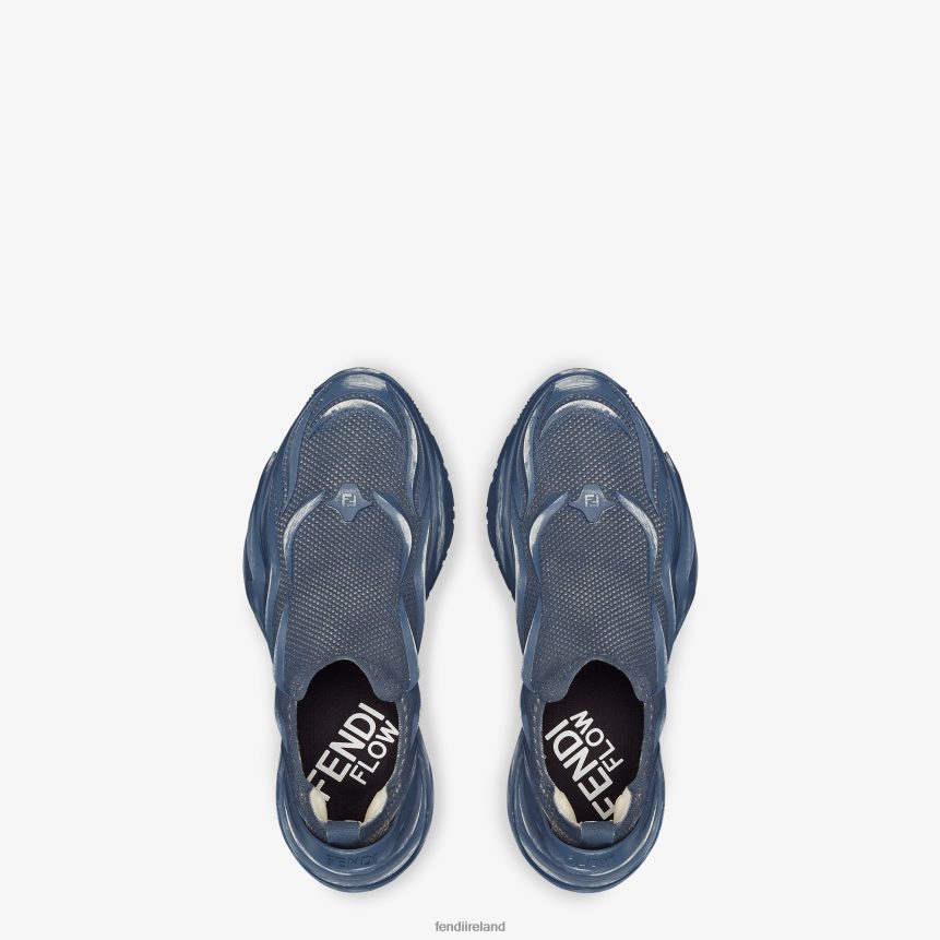 Slip-on sneaker with corrugated sole with engraved F. Fendi Flow lettering embossed on the heels. Made of blue jacquard mesh. Details in tone on tone rubber embellished with innovative artisanal techniques.