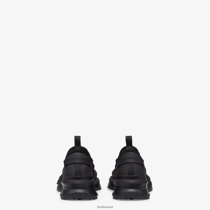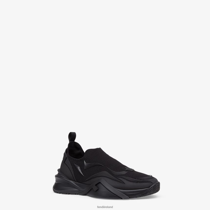 Slip-on sneaker with corrugated sole with engraved F. Fendi Flow lettering embossed on the heels. Made of black jacquard knit. Details in tone on tone rubber embellished with innovative artisanal techniques.