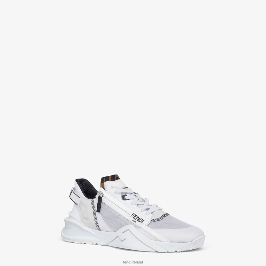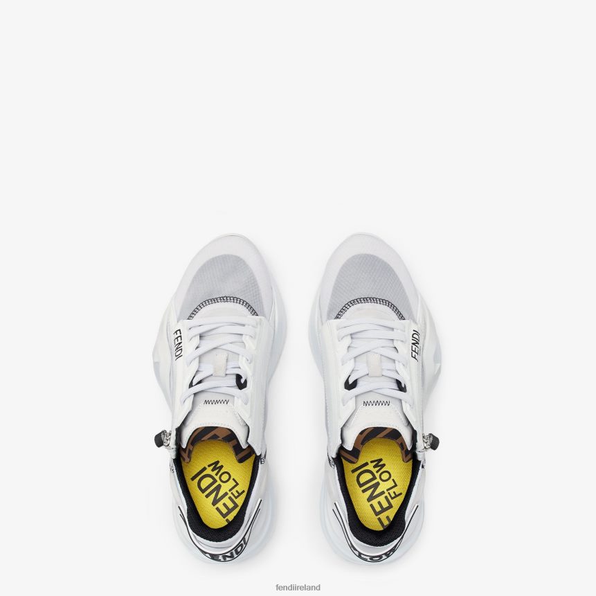 Slip-on sneakers with stretch laces, side zip and corrugated sole with engraved F. Fendi Flow lettering embossed on the heels. Made of a mix of tech fabrics and suede in white. Embellished with Lycra details. Tongue with FF motif. EVA sole.