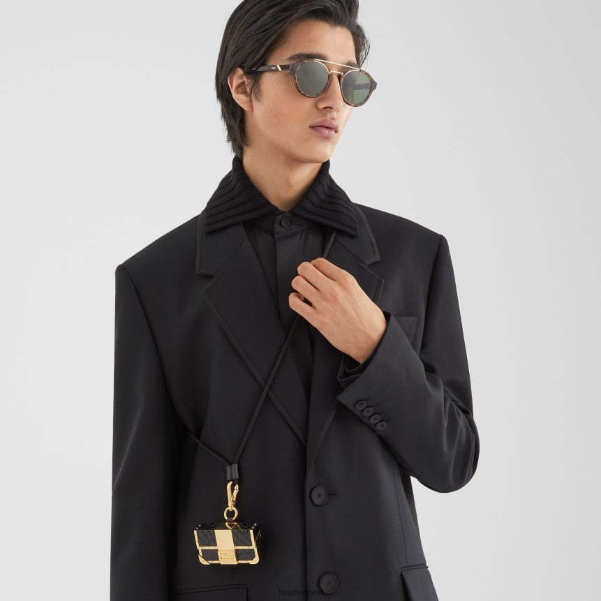 Round sunglasses in Havana acetate. Double bridge in gold-colored metal. Temples with brown rubberized insert and embossed FF pattern branded with a gold metal detail. Green lenses.