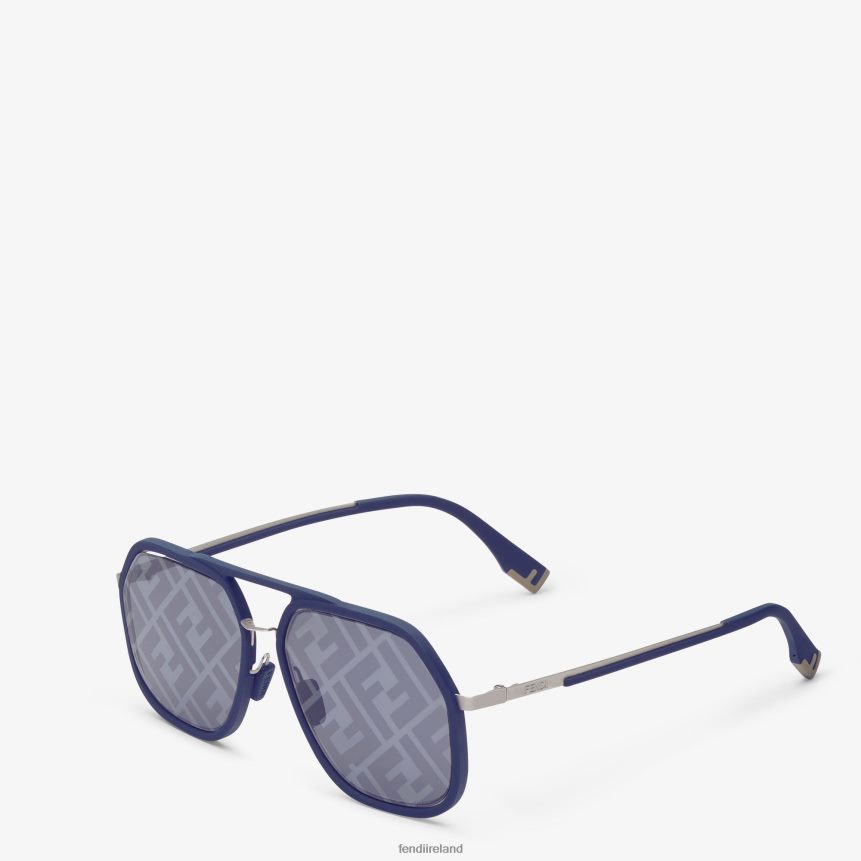 Square sunglasses in an ultra-light design, with rubber-texture blue injection-molded frames. Front frame with double bridge and silver-mirrored blue lenses with all-over FF logo. Slender temples and adjustable nose pads.