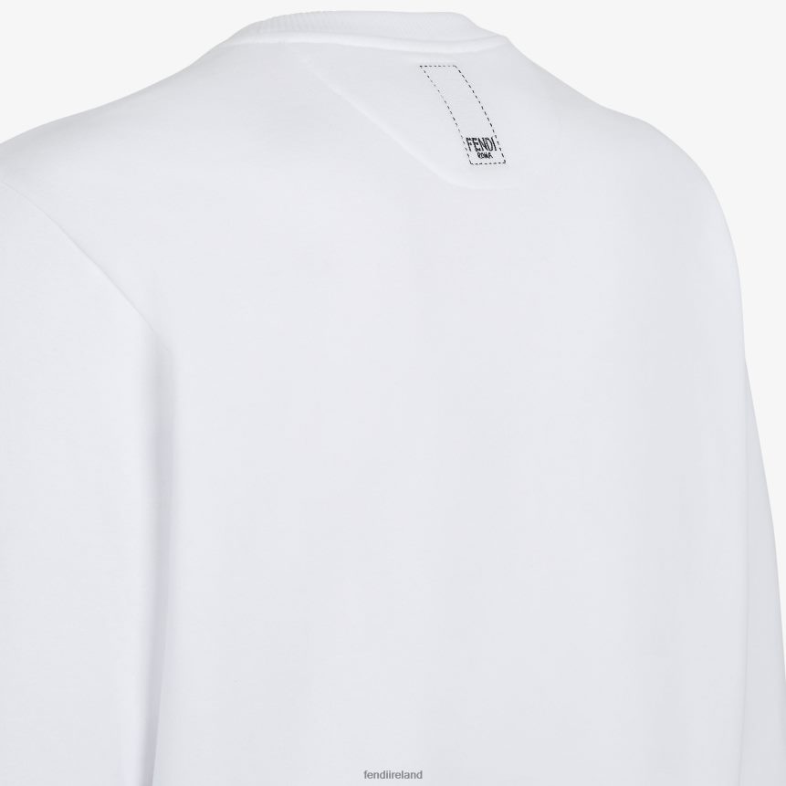 Oversized, crew-neck sweatshirt with long sleeves. Made of white cotton jersey. Decorated with the Fendi embroidered jacquard label on the chest and back.