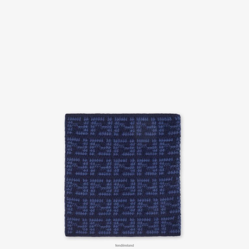 Cashmere collar with all-over FF jacquard motif in blue and light blue.
